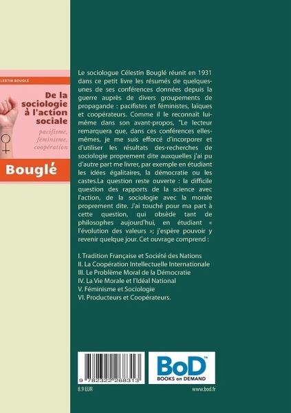 Le sociologue Célestin Bouglé réunit en 1931 dans ce petit livre les résumés de quelques-unes de ses conférences données depuis la guerre auprès de divers groupements de propagande : pacifistes et féministes, laïques et coopérateurs. Comme il le reconnaît lui-même dans son avant-propos, "Le lecteur remarquera que, dans ces conférences elles-mêmes, je me suis efforcé d'incorporer et d'utiliser les résultats des-recherches de sociologie proprement dite auxquelles j'ai pu d'autre part me livrer, par exemple en étudiant les idées égalitaires, la démocratie ou les castes.La question reste ouverte : la difficile question des rapports de la science avec l'action, de la sociologie avec la morale proprement dite. J'ai touché pour ma part à cette question, qui obsède tant de philosophes aujourd'hui, en étudiant « l'évolution des valeurs »; j'espère pouvoir y revenir quelque jour.Cet ouvrage comprend :Avant-propos, par Célestin BougléI. Tradition Française et Société des NationsII. La Coopération Intellectuelle InternationaleIII. Le Problème Moral de la DémocratieIV. La Vie Morale et l'Idéal NationalV. Féminisme et SociologieVI. Producteurs et Coopérateurs.