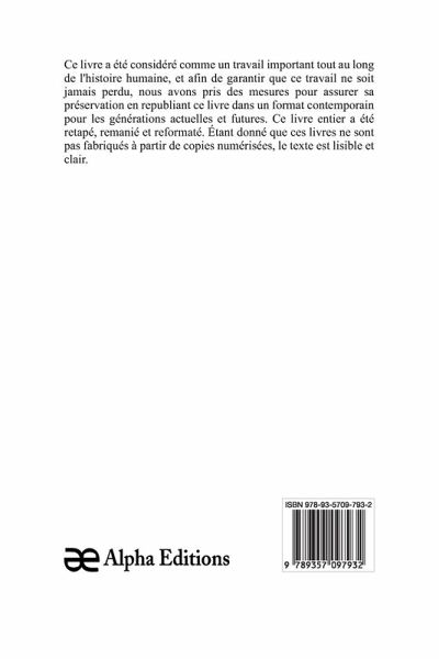 De l'amour, a été considérée comme importante tout au long de l'histoire de l'humanité. Dans un effort pour s'assurer que ce travail ne soit jamais perdu, nous avons pris des mesures pour assurer sa préservation en republiant ce livre dans un format moderne pour les générations actuelles et futures. Ce livre complet a été retapé, remanié et reformaté. Comme ces livres ne sont pas des scans des publications originales des auteurs, le texte est lisible et clair.