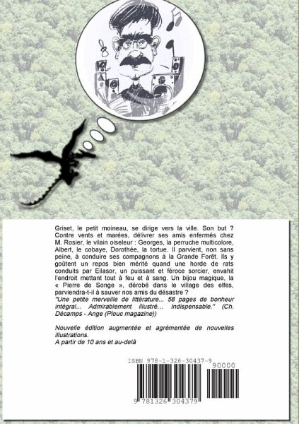 Griset, le petit moineau, se dirige vers la ville. Son but ? Contre vents et marées, délivrer ses amis enfermés chez M. Rosier, le vilain oiseleur : Georges, la perruche multicolore, Albert, le cobaye, Dorothée, la tortue. Il parvient, non sans peine, à conduire ses compagnons à la Grande Forêt. Ils y goûtent un repos bien mérité quand une horde de rats conduits par Eilasor, un puissant et féroce sorcier, envahit l'endroit mettant tout à feu et à sang. Un bijou magique, la Pierre de Songe , dérobé dans le village des elfes, parviendra-t-il à sauver nos amis du désastre ? ""Une petite merveille de littérature... 58 pages de bonheur intégral... Admirablement illustré... Indispensable."" (Ch. Décamps - Ange (Plouc magazine)) Nouvelle édition augmentée et agrémentée de nouvelles illustrations. A partir de 10 ans et au-delà