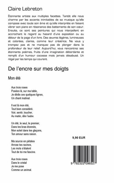Aujourd'hui, vous rencontrez Claire Lebreton et ses étonnants poèmes, fruits d'une imagination débordante et remplit d'un humour cocasse mais jamais désabusé. Un régal par les temps qui courent.Jugez vous-même : Le saxoUn saxo, déprimé,Le matin, sans batterie,Sur la Seine désenchantée,Sur tous les trottoirs de Paris.Lustre son cuivre,Attend le souffle animéD'un homme ivre,Qui voudrait pouvoir aimer.Cet homme qui prend le train à vapeur,Vapeurs d'alcool et de tuyaux percés,A su jouer avec ses doigtsLes mélodies de son émoi.Il s'est ensablé le temps,Ce temps qui prend son temps.Le saxo tout vidé de son chantN'a pas retrouvé son joueur d'avant.Le jazz des palaces,A laissé des tracesSur les reflets des glaces,Sur les trottoirs d'en face.