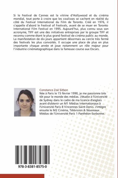 Si le Festival de Cannes est la vitrine d Hollywood et du cinéma mondial, tout porte a croire que les coulisses se cachent en réalité du côté du Festival International du Film de Toronto. Cre e en 1976, il s appelle d abord le Festival of Festivals, avant de se muer en Toronto International Film Festival en 1995. Aujourd hui, plus connu sous son acronyme, TIFF est une des initiatives entreprises par le groupe TIFF et reconnu comme e tant le plus grand festival de cine ma public au monde. La manifestation de dix jours appartient de sormais au cercle tre s ferme des festivals les plus convoite s. Il occupe une place de plus en plus importante chaque année et joue notamment un rôle majeur pour l industrie cine matographique dans la fameuse course aux Oscars.