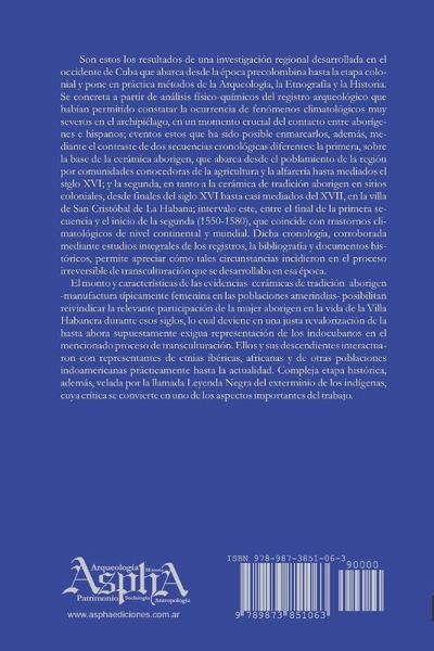 Son estos los resultados de una investigación regional desarrollada en el occidente de Cuba que abarca desde la época precolombina hasta la etapa colonial y pone en práctica métodos de la Arqueología, la Etnografía y la Historia. Se concreta a partir de análisis físico-químicos del registro arqueológico que habían permitido constatar la ocurrencia de fenómenos climatológicos muy severos en el archipiélago, en un momento crucial del contacto entre aborígenes e hispanos; eventos estos que ha sido posible enmarcarlos, además, mediante el contraste de dos secuencias cronológicas diferentes: la primera, sobre la base de la cerámica aborigen, que abarca desde el poblamiento de la región por comunidades conocedoras de la agricultura y la alfarería hasta mediados el siglo XVI; y la segunda, en tanto a la cerámica de tradición aborigen en sitios coloniales, desde finales del siglo XVI hasta casi mediados del XVII, en la villa de San Cristóbal de La Habana.