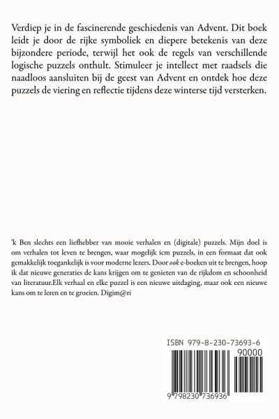 Verdiep je in de fascinerende geschiedenis van Advent. Dit boek leidt je door de rijke symboliek en diepere betekenis van deze bijzondere periode, terwijl het ook de regels van verschillende logische puzzels onthult. Stimuleer je intellect met raadsels die naadloos aansluiten bij de geest van Advent en ontdek hoe deze puzzels de viering en reflectie tijdens deze winterse tijd versterken.