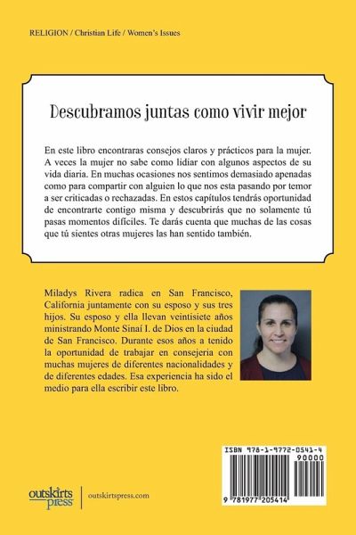 En este libro encontraras consejos claros y prácticos para la mujer. A veces la mujer no sabe como lidiar con algunos aspectos de su vida diaria. En muchas ocasiones nos sentimos demasiado apenadas como para compartir con alguien lo que nos esta pasando por temor a ser criticadas o rechazadas. En estos capítulos tendrás oportunidad de encontrarte contigo misma y descubrirás que no solamente tú pasas momentos difíciles. Te darás cuenta que muchas de las cosas que tú sientes otras mujeres las han sentido también.