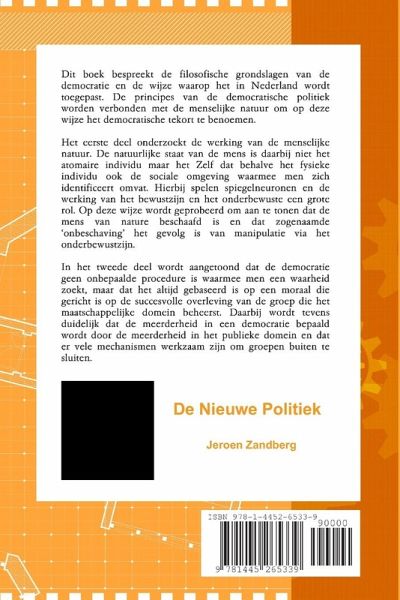 'De Nieuwe Politiek¿ bespreekt de grondslagen van de democratie en de wijze waarop het in Nederland wordt toegepast. Door discussie in het publieke domein komt men tot een waarheid. In onze democratie is die meerderheid niet gebaseerd op de numerieke meerderheid maar op de meerderheid in het publieke domein. Door nu de gewone burger uit te sluiten van het debat wordt hij een minderheid en zal de samenleving hem niet representeren. Het boek geeft argumenten aan de 'zwijgende meerderheid' die niet zozeer zwijgt omdat ze het overal mee eens is, maar zwijgt omdat ze niet de beschikking hebben over de juiste argumenten en zo overbluft worden door de heersende elite, waardoor zij een minderheid zijn in het publieke domein en daardoor weinig invloed kunnen uitoefenen op de wijze waarop de samenleving nu en in de toekomst zou moeten worden ingericht. Daarnaast geeft het boek een verklaring en mogelijke oplossingen voor het democratische tekort.