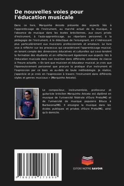 Dans ce livre, Marquinho Aniceto présente des aspects liés à l'apprentissage de l'instrument, au marché actuel de la musique, à l'absence de musique dans les écoles brésiliennes, aux cours privés d'instrument, à l'auto-apprentissage, au répertoire personnel, à la pédagogie de l'instrument, à la didactique de l'enseignant, en s'intéressant plus particulièrement aux musiciens professionnels et amateurs. Le livre vise à réfléchir sur les processus qui caractérisent l'apprentissage musical, en tenant compte des dimensions éducatives et culturelles qui sous-tendent la formation des étudiants et en réfléchissant également aux aspects liés à l'éducation musicale dans son insertion dans différents contextes de classe à l'heure actuelle. « En tant que musicien et éducateur musical, je crois que l'épanouissement personnel que procure la pratique d'un instrument et l'expression par ce biais va au-delà de toute méthodologie. Je réalise, j'apprécie et je crois en l'expression à travers l'instrument dans différents styles et genres musicaux » (Marquinho Aniceto).