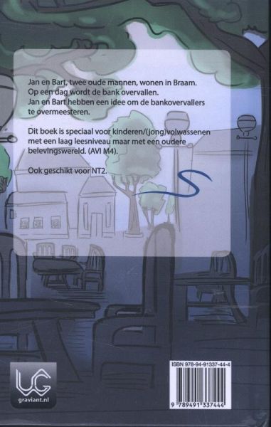 Jan en Bart, twee oude mannen, wonen in Braam. Op een dag wordt de bank overvallen. Jan en Bart hebben een idee om de bankrovers te overmeesteren. Dit boek is speciaal voor kinderen/(jong)volwassenen met een laag leesniveau maar met een oudere belevingswereld. (AVI M4). Ook geschikt voor NT2.