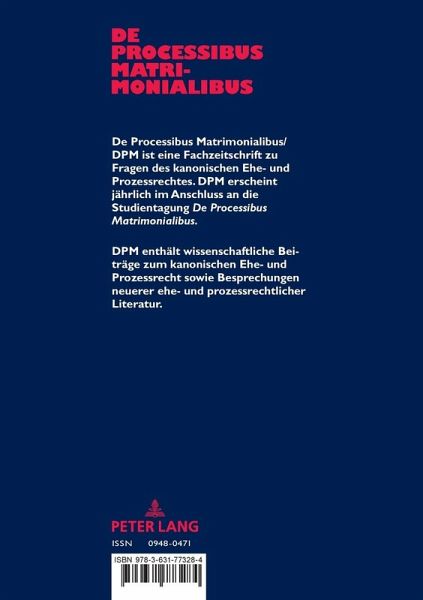 De processibus matrimonialibus/DPM ist eine Fachzeitschrift zu Fragen des kanonischen Ehe- und Prozeßrechtes. DPM erscheint jährlich im Anschluß an das offene Seminar für die Mitarbeiter des Konsistoriums des Erzbistums Berlin de processibus matrimonialibus.