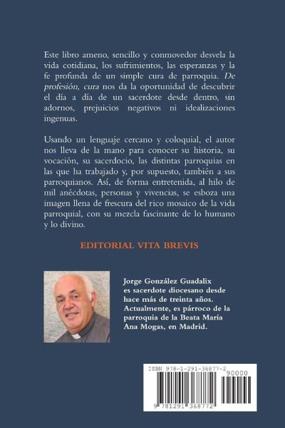 Este libro ameno, sencillo y conmovedor desvela la vida cotidiana, los sufrimientos, las esperanzas y la fe profunda de un simple cura de parroquia. "De profesión, cura" nos da la oportunidad de descubrir el día a día de un sacerdote desde dentro, sin adornos, prejuicios negativos ni idealizaciones ingenuas. Usando un lenguaje cercano y coloquial, el autor nos lleva de la mano para conocer su historia, su vocación, su sacerdocio, las distintas parroquias en las que ha trabajado y, por supuesto, también a sus parroquianos. Así, de forma entretenida, al hilo de mil anécdotas, personas y vivencias, se esboza una imagen llena de frescura del rico mosaico de la vida parroquial, con su mezcla fascinante de lo humano y lo divino.