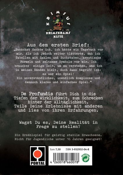 Aus den dunklen Tiefen ist dieses Buch aufgestiegen um dich in seinen Bann zu ziehen. Versinke in den Abgründen von De Profundis und sieh die Welt mit ganz anderen Augen. Denn nichts ist mehr, wie es scheint. Wagst Du es, an Deiner Realität zu zweifeln?