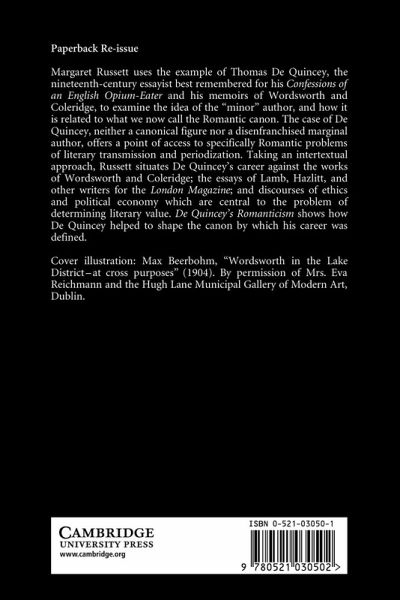 The relationship between Thomas De Quincey as a 'minor' writer and the Romantic canon.
