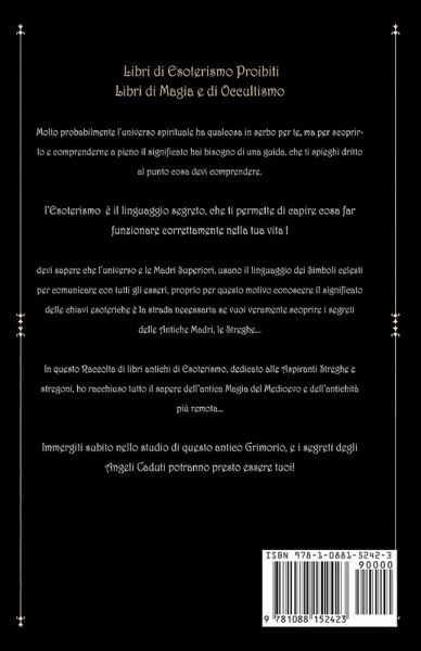 De Quinta Essentiae - Grimorio di Alchimia Medioevale Libri di Esoterismo ProibitiLibri di Magia e di Occultismo Molto probabilmente l'universo spirituale ha qualcosa in serbo per te, ma per scoprirlo e comprenderne a pieno il significato hai bisogno di una guida, che ti spieghi dritto al punto cosa devi comprendere. l'Esoterismo è il linguaggio segreto, che ti permette di capire cosa far funzionare correttamente nella tua vita ! devi sapere che l'universo e le Madri Superiori, usano il linguaggio dei Simboli celesti per comunicare con tutti gli esseri, proprio per questo motivo conoscere il significato delle chiavi esoteriche è la strada necessaria se vuoi veramente scoprire i segreti delle Antiche Madri, le Streghe In questo Raccolta di libri antichi di Esoterismo, dedicato alle Aspiranti Streghe e stregoni, ho racchiuso tutto il sapere dell'antica Magia del Medioevo e dell'antichità più remota Immergiti subito nello studio di questo antico Grimorio, e i segreti degli Angeli Caduti potranno presto essere tuoi!