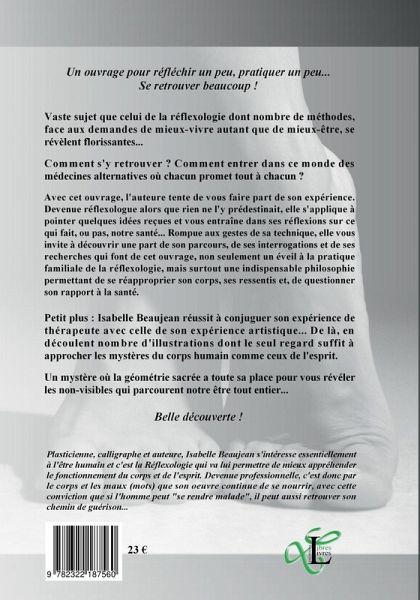 Avec cet ouvrage, l'auteure tente de vous faire part de son expérience. Devenue réflexologue alors que rien ne l'y prédestinait, elle s'applique à pointer quelques idées reçues et vous entraîne dans ses réflexions sur ce qui fait, ou pas, notre santé... Rompue aux gestes de sa technique, elle vous invite à découvrir une part de son parcours, de ses interrogations et de ses recherches qui font de cet ouvrage, non seulement un éveil à la pratique familiale de la réflexologie mais surtout une indispensable philosophie permettant de se réapproprier son corps, ses ressentis et, de questionner son rapport à la santé.