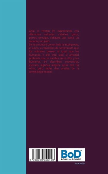 Aquí se relatan las experiencias con diferentes animales, caballos, gatos, perros, tortugas, cobayos, una oveja, un canario y un pato. Se nos muestra por un lado la inteligencia, el amor, la capacidad de sentimiento que los animales poseen al igual que los humanos, y por otro lado la amistad profunda que se entabla entre ellos y los humanos. Se describen encuentros, escenas, algunas alegres, otras con fin triste, pero todas dan prueba de la sensibilidad animal.