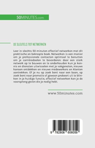 Leer in slechts 50 minuten effectief netwerken met dit praktische en beknopte boek. Netwerken is een manier om je professionele contacten optimaal te benutten om je carrièredoelen te bevorderen: door een sterk netwerk op te bouwen en te onderhouden kun je kennis en diensten uitwisselen met je vakgenoten, nieuwe kansen ontdekken en nieuwe medewerkers en klanten aantrekken. Of je nu op zoek bent naar een baan, op zoek bent naar promotie of gewoon probeert uit te blinken in je huidige functie, effectief netwerken kan je de voorsprong geven die je nodig hebt. In dit boek leer je hoe netwerken je kan helpen bij werving, klantenwerving en de organisatie van evenementen. Het bevat ook nuttige tips voor het gebruik van sociale netwerken zoals LinkedIn, advies voor het bereiken van zakelijke contacten en begeleiding op maat voor bijzonder verlegen of drukke mensen, zodat je in een mum van tijd een deskundige netwerker wordt!