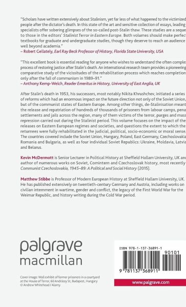 This unique volume examines how and to what extent former victims of Stalinist terror from across the Soviet Union and Eastern Europe were received, reintegrated and rehabilitated following the mass releases from prisons and labour camps which came in the wake of Stalin's death in 1953 and Khrushchev's reforms in the subsequent decade.