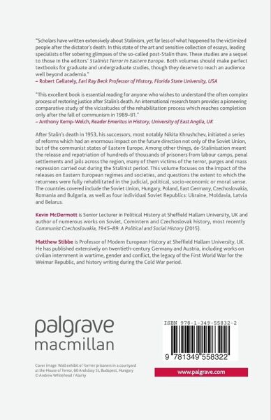 This unique volume examines how and to what extent former victims of Stalinist terror from across the Soviet Union and Eastern Europe were received, reintegrated and rehabilitated following the mass releases from prisons and labour camps which came in the wake of Stalin's death in 1953 and Khrushchev's reforms in the subsequent decade.