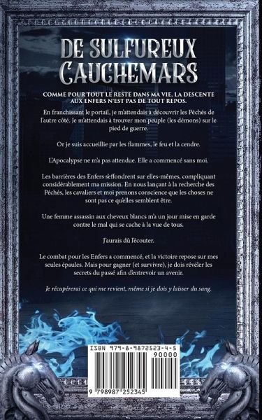 Comme pour tout le reste dans ma vie, la descente aux Enfers n'est pas de tout repos. En franchissant le portail, je m'attendais à découvrir les Péchés de l'autre côté. Je m'attendais à trouver mon peuple (les démons) sur le pied de guerre. Or je suis accueillie par les flammes, le feu et la cendre. L'Apocalypse ne m'a pas attendue. Elle a commencé sans moi. Les barrières des Enfers s'effondrent sur elles-mêmes, compliquant considérablement ma mission. En nous lançant à la recherche des Péchés, les cavaliers et moi prenons conscience que les choses ne sont pas ce qu'elles semblent être. Une femme assassin aux cheveux blancs m'a un jour mise en garde contre le mal qui se cache à la vue de tous. J'aurais dû l'écouter. Le combat pour les Enfers a commencé, et la victoire repose sur mes seules épaules. Mais pour gagner (et survivre), je dois révéler les secrets du passé afin d'entrevoir un avenir. Je récupérerai ce qui me revient, même si je dois y laisser du sang.