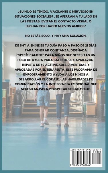 De tímido a brillante: Un programa de 21 días con 39 actividades divertidas para aumentar la confianza social de su hijo ¿Su hijo es tímido, vacilante o nervioso en situaciones sociales? ¿Se pega a su lado en las fiestas, evita el contacto visual o le cuesta hacer nuevos amigos? No está solo, y hay una solución. De la timidez al resplandor es una guía paso a paso de 21 días diseñada específicamente para los niños que necesitan un poco de ayuda para salir de su caparazón. Repleto de 39 actividades divertidas y aprobadas por terapeutas, este programa fortalecedor ayuda a los niños a desarrollar el valor, las habilidades comunicativas y la inteligencia emocional que necesitan para prosperar socialmente. Lo que descubrirá en su interior: ¿ Atractivos ejercicios diarios que amplían suavemente la zona de confort de tu hijo ¿ Guiones y juegos sencillos para los saludos, el contacto visual, el manejo de la vergüenza y mucho más ¿ Potentes herramientas para que los padres creen un hogar seguro y alentador ¿ Consejos adicionales para ayudar a su hijo a desenvolverse con soltura en entornos sociales del mundo real Si su hijo es sólo un poco vacilante o experimenta ansiedad social más profunda, este libro ofrece la mezcla perfecta de diversión y función para apoyar su crecimiento, con usted a su lado en cada paso del camino. Este programa, perfecto para niños de 5 a 12 años, fomenta la confianza social para toda la vida: un pequeño momento de valentía cada vez.