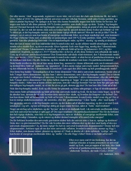 Denne bog, er nummer to i en helt ny serie, som skal afsløre det nye og fuldt ud beviste 5 dimensionale kvantefysiske univers! Den big-bangske fysik og filosofi, er nu fuldstændigt modbevist af partikelacceleratoren, i mangel af påståede partikler! Universet er nu bevist af forskerne og af partikelacceleratoren der nede i Cern! Disse beviser peger kun i en retning, imod et univers som kun består af energirige oscillerende felter, og et højst mærkeligt stof, og absolut ingen forme for fysiske partikler! Denne bog, er en opfølger på den første og helt grundlæggende bog, Genopdagelsen af den femte dimension! Disse to bøger, vil forklare dig hele det nye 5 dimensionale kvantefysiske univers, kun bestående af energirige oscillerende felter og et meget forunderligt stof! Tilsammen bliver det til absolut alt som vi kan se, opdage og detektere! Det meget aktive universale maskinrum, stedet hvor absolut alt af fysiske aktioner udfolder sig, består af hele 5 meget aktive dimensioner! Udenfor, er der det man kan kalde, stille! Kun kvantefysikkens dybe mysterier, kan give dig svaret på de resterende dimensioner udover! Alt af aktive fysiske aktioner, som kun foregår i det meget aktive maskinrum, er kvantefysiske aktioner! Det er kun disse 5 kvantefysiske dimensioner som faktisk er det aktive universale maskinrum, og det er kun de to ydre af disse 5 dimensioner, som er selve drivkraften i det 5 dimensionale meget aktive kvantefysiske univers! De to mest spændende dimensioner i det aktive maskinrum, er den 5te og den 4de kvantefysiske dimension, hver for sig! Deri vi finder den helt rigtige kvantefysik og det vil disse to bøger kunne overbevise dig alt om! De skal bare læses og forstås! Bøgerne vil forklare dig om den rigtige skabelse af universet, og vil forklare dig den rigtige inflation og hvordan den udvikler sig! Den nye ekspansionslov vil blive forklaret, noget som driver inflationen og ekspansionen i universet! Den universale gravitation er forklaret i den første og grundlæggende bog, sammen med hvordan gravitationen skaber og driver dette kvantefysiske univers! Du vil blive forklaret hvordan og hvad atomer i grunden er, sammen med Higgs felterne! Higgs felterne er meget specielle! Fordi, stoffet er meget specielt i dette kvantefysiske univers, hvori der ikke findes nogen som helst forme for 100 % fysiske partikler! Et totalt partikelløst univers kun med energirige oscillerende felter og stoffet i fra alle Higgs felter!