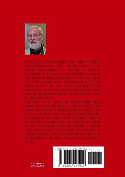 Zeventig jaar later beschrijft Niek Sickenga wat hem - en zijn familie - in de Tweede Wereldoorlog is overkomen. Ergens in Nederland. In dit geval was dat in Bilthoven aan de Utrechtse heuvelrug. Daar begon voor hem wat hij nu noemt 'de weg naar vrede'. Hij verloor al vroeg in die oorlog, in mei 1942, zijn oudste broer Jaap. En hij beschrijft nu wat er toen feitelijk gebeurde op zowel grote als op heel kleine schaal. Als een der laatsten van zijn familiegeneratie. Ook jaren na die oorlog, in Zuid Frankrijk en in Scandinavië, komt hij delen van die weg tegen. Via Duitsland wordt die duidelijker en het toeval (?) heeft in Nieuw-Zeeland nog een extra verrassing in petto. Zijn weg naar vrede met het verleden, met het heden en met zijn toekomst zoekt en probeert hij zelf te vinden en te realiseren. Dat is de feitelijke boodschap voor ieder van ons. Zijn verhaal begint in 1939 in Egmond aan Zee met de Nederlandse mobilisatie en eindigt ergens in de Friese Wouden in de actualiteit van nu.