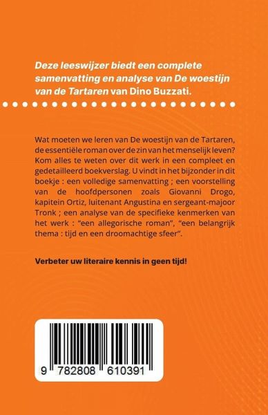 Wat moeten we leren van De woestijn van de Tartaren, de essentiële roman over de zin van het menselijk leven? Kom alles te weten over dit werk in een compleet en gedetailleerd boekverslag. U vindt in het bijzonder in dit boekje : - Een volledige samenvatting - Een voorstelling van de hoofdpersonen zoals Giovanni Drogo, kapitein Ortiz, luitenant Angustina en sergeant-majoor Tronk - Een analyse van de specifieke kenmerken van het werk: een allegorische roman, een belangrijk thema: tijd en een droomachtige sfeer Een referentieanalyse om snel de betekenis van het werk te begrijpen.