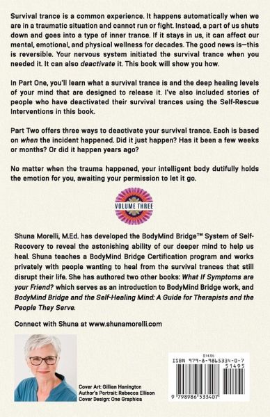 Survival trance is a common experience. It happens automatically when we are in a traumatic situation and cannot run or fight. Instead, a part of us shuts down and goes into a type of inner trance. If it stays in us, it can affect our mental, emotional, and physical wellness for decades. The good news is-this is reversible. Your nervous system initiated the survival trance when you needed it. It can also deactivate it. This book will show you how. In Part One, you'll learn what a survival trance is and the deep healing levels of your mind that are designed to release it. I've also included stories of people who have deactivated their survival trances using the Self-Rescue Interventions in this book. Part Two offers three ways to deactivate your survival trance. Each is based on when the incident happened. Did it just happen? Has it been a few weeks or months? Or did it happen years ago? No matter when the trauma happened, your intelligent body dutifully holds the emotion for you, awaiting your permission to let it go.