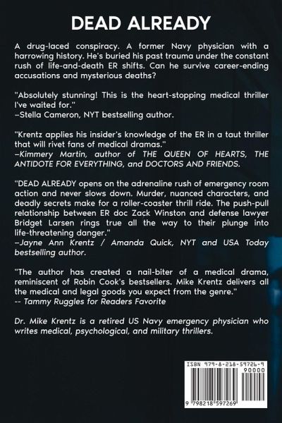A drug-laced conspiracy. A former Navy surgeon with a harrowing history. Will a covert frame job end his career... and his life? Zack Winston can't outrun his mistakes. Working in the high-pressure environment of the ER, the widowed doctor is haunted by lives he should have saved. But when he fails to resuscitate his coworker's husband from a fatal cardiac arrest, he's blindsided by the livid ICU nurse launching a career-threatening malpractice suit. Falling under harsh criticism when he tries to investigate a strange poisoning in the hospital, Zack comes face to face with his traumatic past during courtroom depositions. And as he and his alluring lawyer look closer into the suspicious body count on the rise, uncovering the source could land them both in the kill zone. With shadowy accusers eager to get him fired, will his fight for answers see him flatline? Dead Already is the nail-biting first book in the Dr. Zack Winston series of medical thrillers. If you like nuanced characters, endless adrenaline rushes, and vividly realistic settings, then you'll love emergency physician Mike Krentz's suspenseful drama.