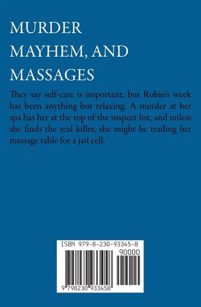 Robin's life is in freefall over one weekend in April. On Friday, her fiancé Dustin calls off their wedding, on Saturday, she and her best friend Callie have a bonfire to burn everything but the dress, and on Sunday she moves from Dustin's apartment to her 80-year-old grandmother's house in the country. She's looking forward to returning to work and normalcy as a massage therapist at Rejuvenate, a popular day spa in a Miami suburb, but when she arrives Monday morning, a shirtless dead body has been discovered in the salt therapy room. The body belongs to one of her former clients. Six months ago, he'd been so obnoxious, she had to call the police on him, and because he's never worked with anyone else at the spa, it means Robin is the number one suspect. Quickly, Robin decides she needs to figure out who murdered him. Being sent to prison makes Robin's disastrous weekend seem as trivial as a bad pedicure. The only bright spot in this increasingly dark picture is that Robin's favorite client Luca, a police officer with a bad back, believes Robin is innocent.