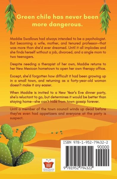 Green chile has never been more dangerous. Psychologist Maddie Swallows has done something she swore she'd never do. Return to her New Mexican hometown. It seemed like a good idea at the time, considering the divorce and her two teenagers she dragged along for the ride. But that was before the New Year's Eve party she was guilt-tripped into attending. Before a member of the town council wound up dead and everyone at the party became a suspect. And before she was forced to unravel the secrets of her former home in order to clear her name. Of course, with the help of two precocious teenagers and one meddling mother, the real murderer doesn't stand a chance.