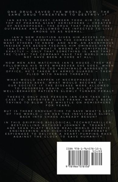 One drug saved the world. Now, the same drug threatens to destroy it. Rising star Ian Keys has climbed to the top rungs of pharma giant Hemisphere - creator of Necrophage, the drug that paused the necrotic outbreak and allowed the infected to live among us. Ian's new position gives him access to dangerous secrets that could ruin the company. When ominous hints from an anonymous insider set him on the hunt for the biggest secret of all, he discovers that the "cure" the company gave the world might not have been a cure at all. Now men are watching Ian's house. They're following his wife wherever she goes. When he's called to CEO Archibald Burgess's office, he's taken by armed guards - then plied with vague threats. What would happen if Necrophage failed? Burgess asks. What would become of our society if the disease were allowed to progress again ... and all of our well-behaved patients slowly turned feral? There's only one person Ian can take his case to: reporter Alice Frank, who's been trying to blow the whistle on Hemisphere for years. But is there time to save what's left of the world ... or has the inevitable slide back into chaos already begun?