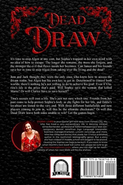 Book 3 in the Sophie Lee Saga! This book will delight fans of TV shows like Alias, Dark Angel, and Stranger Things who love reading paranormal thrillers such as Nora Roberts Key Trilogy. It's time to stop Algos at any cost, but Sophie's trapped in her own mind with no idea of how to escape. The longer she remains, the more she forgets, and the stronger the evil that flows inside her becomes. Can James and his friends save her in time to stop Algos from taking over the living and the dead? Jess and Jack thought they were the only ones that knew how to access the dream realm, but Algos has his own key to get in. Determined to control both worlds, there's nothing he's not willing to do to achieve his goal. Even if Clarice's life is the price that's paid. Will Sophie save the woman that killed Mario? Or will Clarice have to save herself? Tina's secrets will cost a life. She's just not sure which one. Friends from her past come to help protect Sophie's body as she fights for her life, and Eddie's loyalties are tested to the very end. With three different battlefields and new players coming to join in, will this be the ultimate checkmate? Or will this Dead Draw leave both sides unable to win? Let the games begin.... Book 3 in the Sophie Lee Saga! The third book in this witty paranormal thriller with a genetically altered female assassin. Cliff-hangers, swearing, intimate or graphic scenes.