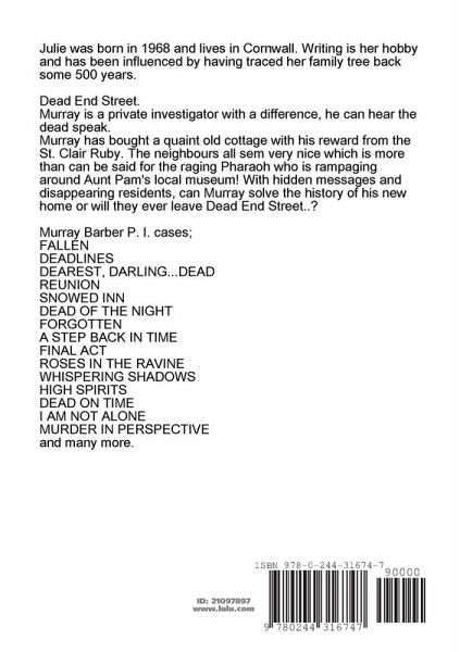 Murray has bought a quaint old cottage with his reward from the St Clair ruby. The neighbours all seem very nice which is more than can be said for the raging Pharaoh who is rampaging around Aunt Pam's local museum! With hidden messages and disappearing residents, can Murray solve the history of his new home or will they ever leave Dead End Street...?