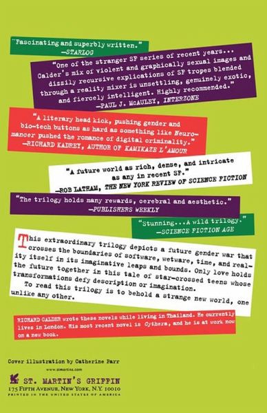 This extraordinary trilogy depicts a future gender war that crosses the boundaries of software, wetware, time, and reality itself in its imaginative leaps and bounds. Only love holds the future together in this tale of star-crossed teens whose transformations defy description or imagination. To read this trilogy is to behold a strange new world, one unlike any other.