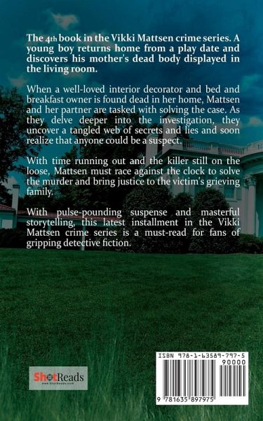 When a well-loved interior decorator and bed and breakfast owner is found dead in her home, Mattsen and her partner are tasked with solving the case. As they delve deeper into the investigation, they uncover a tangled web of secrets and lies and soon realize that anyone could be a suspect. With time running out and the killer still on the loose, Mattsen must race against the clock to solve the murder and bring justice to the victim's grieving family. With pulse-pounding suspense and masterful storytelling, this latest installment in the Vikki Mattsen crime series is a must-read for fans of gripping detective fiction.