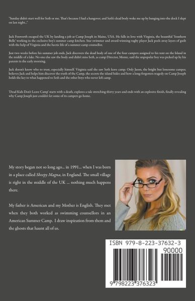 "Sunday didn't start well for Seth or me. That's because I had a hangover, and Seth's dead body woke me up by banging into the dock I slept on last night..." Jack Foxworth escaped the UK by landing a job at Camp Joseph in Maine, USA. He falls in love with Virginia, the beautiful 'Southern Belle' working in the exclusive boy's summer camp kitchen. Star swimmer and award-winning rugby player Jack peels away layers of guilt with the help of Virginia and the hectic life of a summer camp counsellor. Just two weeks before his summer job ends, Jack discovers the dead body of one of the four campers assigned to his tent on the Island in the middle of a lake. No one else saw the body and didn't miss Seth, as camp Director, Monte, said the unpopular boy was picked up by his parents in the early morning. Jack doesn't know who to trust, especially himself. Virginia said she saw Seth leave camp. Only Jason, the bright but lonesome camper, believes Jack and helps him discover the truth of the Camp, the secrets the island hides and how a long-forgotten tragedy on Camp Joseph holds the key to what happened to Seth and the other boys who never left camp. 'Dead Kids Don't Leave Camp' starts with a death, explores a tale stretching thirty years and ends with an explosive finish, finally revealing why Camp Joseph just couldn't let some of its campers go home.