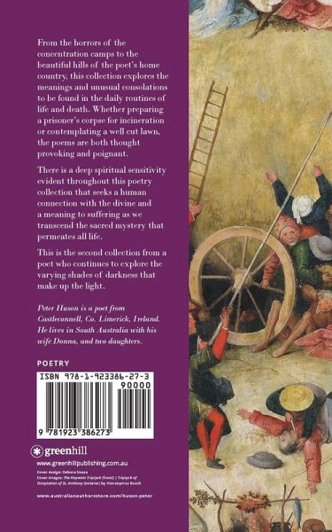From the horrors of the concentration camps to the beautiful hills of the poet's home country, this collection explores the meanings and unusual consolations to be found in the daily routines of life and death. Whether preparing a prisoner's corpse for incineration or contemplating a well cut lawn, the poems are both thought provoking and poignant. There is a deep spiritual sensitivity evident throughout this poetry collection that seeks a human connection with the divine and a meaning to suffering as we transcend the sacred mystery that permeates all life. This is the second collection from a poet who continues to explore the varying shades of darkness that make up the light.