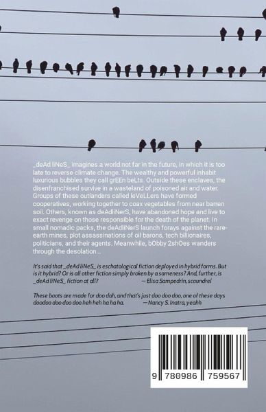 A dystopic work of hybrid fiction, a thriller, a bio-sci-fiction of the future that picks up on Robert Majzels's character bObby 2shOes from Kharlamov's Ankle as he tries to find a way to live a few days longer on this planet while the environmental disaster is near complete...