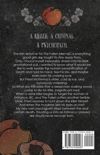 ☆A Top 100 Amazon Bestseller☆ From USA Today & Wall Street Journal Bestselling Author Giana Darling comes a dark MC romance about a broken enforcer and the beautiful, innocent woman who shows him that light can exist even in the dark... A killer. A criminal. A psychopath. The Irish enforcer for The Fallen Men MC is everything good girls are taught to stay away from. Only, I found myself inexorably drawn into his dark gravitational pull. I wanted to know what it would be like to walk beside the human personification of Death and hold his hand, feel his kiss, and maybe even earn his undying love. But Priest McKenna is older, cold as ice, and notoriously unfeeling. So what are the odds that a dead man walking would come to life for little, insignificant me? When a serial killer begins to target the women of Entrance, BC, and The Fallen suffers another terrible blow, Priest resolves to hunt down the killer himself. And when the murderer sets his eyes on me? My very own psychopath steps between me and certain death, thrusting us into an intimacy I prayed we would never recover from. *A standalone book in The Fallen Men Series.*