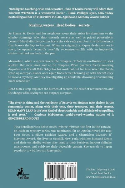 Rushing waters...dead bodies...secrets... As Bianca St. Denis and her neighbors scour their attics for donations to the charity rummage sale, they unearth secrets as well as prized possessions. Leonard Marshall's historic inn hosts the sale each year, but it is his basement that houses the key to his past. When an enigmatic antiques dealer arrives in town, he upends Leonard's carefully reconstructed life with an impossible choice that harkens back to the past. Meanwhile, when a storm forces the villagers of Batavia-on-Hudson to seek shelter, the river rises and so do tempers. Close quarters fuel simmering disputes, and Sheriff Mike Riley has his work cut out for him. When the floods wash up a corpse, Bianca once again finds herself teaming up with Sheriff Riley to solve a mystery. Are they investigating an accidental drowning or something more nefarious? Dead Man's Leap explores the burden of secrets, the relief of renunciation, and the danger of believing we can outpace our past.