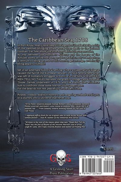 The Caribbean Sea, 1708 AD. In Port Royal, many have heard the legend of the Black Brig, a ship of the damned bringing a fate worse than death to the isolated colonies of the Caribbean Sea. But few know the true story behind the tavern tales. As the war between the Northern Alliance and the League of the Antilles looms on the horizon, an old captain is ready to embark on a venture to cease the blight of the Black Brig once for all and have his revenge. Set in an alternate historical setting, where a supernatural plague caused the fall of the European powers and where what was left of humanity struggles to survive in the New World, Dead Men Tell No Tales narrates the ghastly voyage pirate captain Daniel Drake Davies underwent in 1676, and the events that will force him to confront those same horrors thirty years later. For the dead do not rest peacefully in the Devil's Sea. Pirates, voodoo, and seagoing undead await you in this fantastic journey in a land that never was.