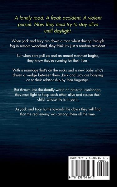 When Jack and Lucy hit a man whilst driving through fog in remote woodland, they think it's just a random accident. But when cars pull up and an armed manhunt begins, they know that they're running for their lives. With a marriage that's on the rocks and a new baby who's driven a wedge between them, Jack and Lucy are hanging on to their relationship by their fingertips. But thrown into the deadly world of industrial espionage, they must fight to keep each other alive and rescue their child, whose life is in peril. As Jack and Lucy hurtle towards the abyss they will find that the real enemy was among them all the time.