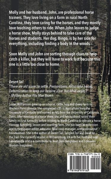 Molly and her husband, John, are professional horse trainers. They love living on a farm in rural North Carolina, they love caring for the horses, and they mostly love teaching others to ride. When John leaves to judge a horse show, Molly stays behind to take care of the horses and students. Her dog, Bingo, is by her side for everything, including finding a body in the woods… Soon Molly and John are sorting through clues to help catch a killer, but they will have to work fast because this one is a little too close to home.