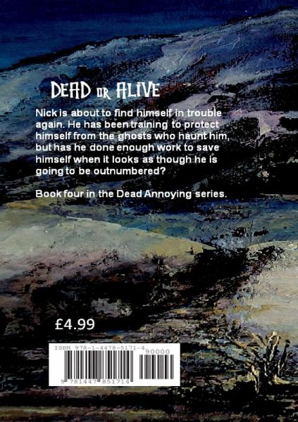 Dead or Alive - book four of the series of short stories 'Dead Annoying', about Nick a teenage boy haunted by ghosts. Nick is about to find himself in trouble again. He has been training to protect himself from the ghosts who haunt him, but has he done enough work, to save himself when it looks as though he's going to be outnumbered?