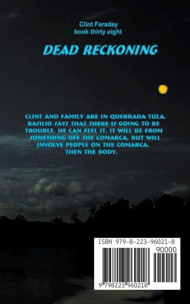 Large print Clint and family are enjoying their last two weeks this trip at their place in Quebrada Tula. Basilio, from Cusapín, is visiting. They are sitting on the porch at sunset, which is spectacular. Basilio says there is going to be trouble. It is in the signs. It will involve people on the comarca, but will not be from the comarca. Clint remembers other times when Basilio made predictions based on a special sunset. He figured he could depend on hearing about exactly that. Then, the body.