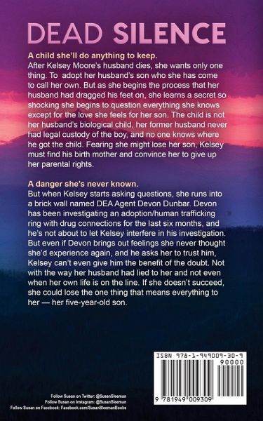 A child she'll do anything to keep. After Kelsey Moore's husband dies, she wants only one thing. To adopt her husband's son who she has come to call her own. But as she begins the process that her husband had dragged his feet on, she learns a secret so shocking she begins to question everything she knows except for the love she feels for her son. The child is not her husband's biological child, her former husband never had legal custody of the boy, and no one knows where he got the child. Fearing she might lose her son, Kelsey must find his birth mother and convince her to give up her parental rights. A danger she's never known. But when Kelsey starts asking questions, she runs into a brick wall named DEA Agent Devon Dunbar. Devon has been investigating an adoption/human trafficking ring with drug connections for the last six months, and he's not about to let Kelsey interfere in his investigation. But even if Devon brings out feelings she never thought she'd experience again, and he asks her to trust him, Kelsey can't even give him the benefit of the doubt. Not with the way her husband had lied to her and not even when her own life is on the line. If she doesn't succeed, she could lose the one thing that means everything to her - her five-year-old son.