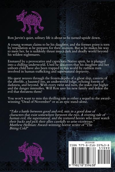 Ron Jarvin's quiet, solitary life is about to be turned upside down. A young woman claims to be his daughter, and the former priest is torn by trepidation as he prepares for their reunion. But as he makes his way to meet her, he is suddenly thrust into a dark and deadly world beyond his wildest nightmares. Ensnared by a provocative and capricious Native spirit, he is plunged into a chilling underworld. Until he discovers that his daughter and her unborn child have also been trapped in this world by ruthless men involved in human trafficking and supernatural depravity. His quest weaves through the frozen depths of a ghost ship, caverns of the afterlife, a haunted inn, an underworld lodge, echoing forests of darkness, and beyond. With every twist and turn, the stakes rise higher and the danger intensifies. Will Ron save his new family and defeat the evil that threatens them? You won't want to miss this thrilling tale as either a sequel to the award-winning "Dead of November" or as an epic stand-alone. A bloodcurdling tale of the macabre in a metaphysical and visionary realm.