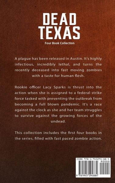 A plague has been released in Austin. It's highly infectious, incredibly lethal, and turns the recently deceased into fast moving zombies with a taste for human flesh. Rookie officer Lacy Sparks is thrust into the action when she is assigned to a federal strike force tasked with preventing the outbreak from becoming a full blown pandemic. It's a race against the clock as she and her team struggles to survive against the growing forces of the undead. This collection includes Day Zero No Comfort Lonesome Road The Journey West