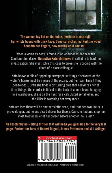 How do you catch a killer who knows your every move? The woman lay flat on the table, her face to one side, her wrists bound with thick tape. Deep scratches marked the wood beneath her fingers, now resting cold and still... When a woman’s body is found in an abandoned bar near the Southampton docks, Detective Kate Matthews is called in to lead the investigation. She must solve this case to prove she is coping with the death of a close colleague. Kate knows a pile of ripped up newspaper cuttings discovered at the victim’s house must be a piece of the puzzle, but her team keep hitting dead-ends... Until she finds a disturbing clue that convinces her of three things: The murder is linked to the body of a man found hanging in a warehouse, she is on the hunt for a calculated serial killer, and the killer is watching her every move. Kate realises there will be another victim soon, and that her own life is in grave danger, but no one else believes her theory. Can she find and stop the most twisted killer of her career, before another life is lost? An absolutely NAIL-BITING thriller that will keep you guessing to the very last page. Perfect for fans of Robert Dugoni, James Patterson and MJ Arlidge.