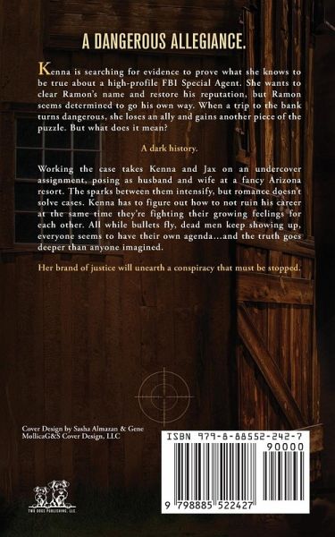 A dangerous allegiance. Kenna is searching for evidence to prove what she knows to be true about a high-profile FBI Special Agent. She wants to clear Ramon's name and restore his reputation, but Ramon seems determined to go his own way. When a trip to the bank turns dangerous, she loses an ally and gains another piece of the puzzle. But what does it mean? A dark history. Working the case takes Kenna and Jax on an undercover assignment, posing as husband and wife at a fancy Arizona resort. The sparks between them intensify, but romance doesn't solve cases. Kenna has to figure out how to not ruin his career at the same time they're fighting their growing feelings for each other. All while bullets fly, dead men keep showing up, everyone seems to have their own agenda...and the truth goes deeper than anyone imagined. Her brand of justice will unearth a conspiracy that must be stopped.